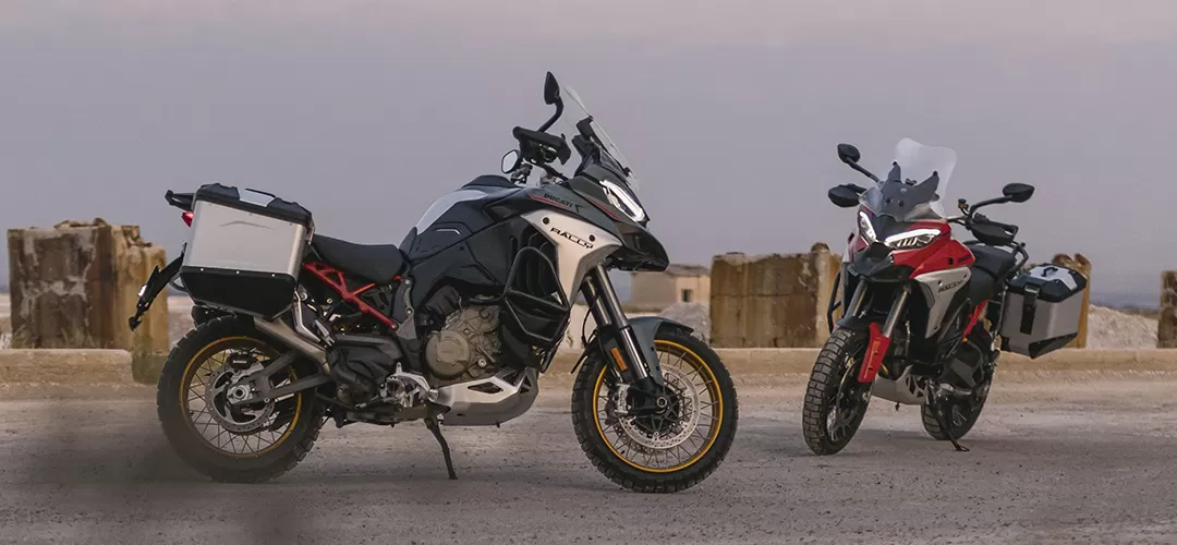 The Multistrada V4 Rally is the ideal companion for long-distance travellers, thanks to its 30-litre fuel tank, Adaptive DSS EVO suspension with longer travel, great rider and passenger comfort, and the ability to tackle any terrain.