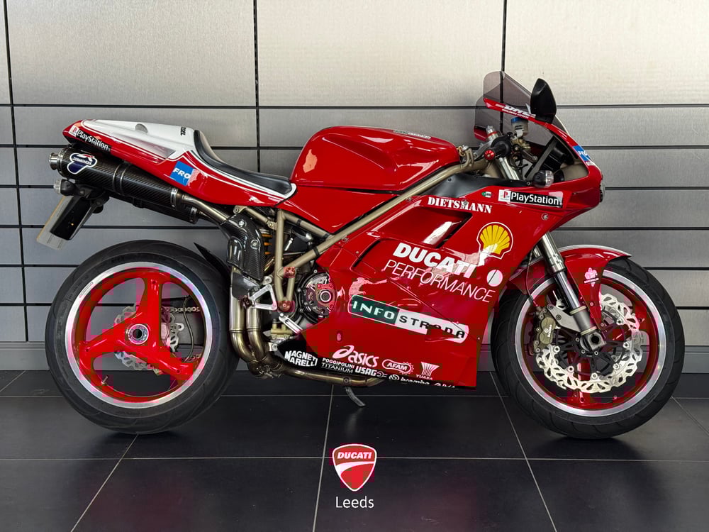 A true legend in the motorcycling world, the Ducati 916 is widely regarded as one of the most beautiful and influential superbikes every built. This 1998 model is among the final evolutions of the original design - blending race-winning performance, timeless styling, and mechanical purity. Now available at Ducati Leeds, this is an exceptional opportunity to own a piece of motorcycling history. This bike is listed as a CAT D from 1998 and has been kept in good nick ever since. Please get in touch with us regarding the history of this bike.